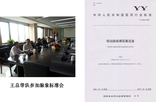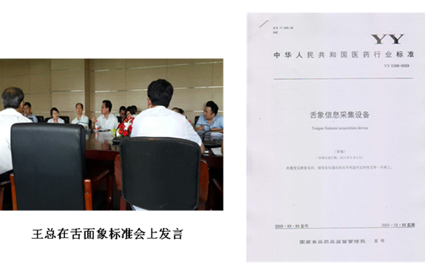 2014年4月,中華人民共和國醫藥行業中醫診斷行業標準會在天津醫療器械質量監督檢驗中心召開,公司作為中醫診斷行業標準制定方、驗證方,董事長王聯攜技術總監、產品部經理應邀參加行業標準會議。