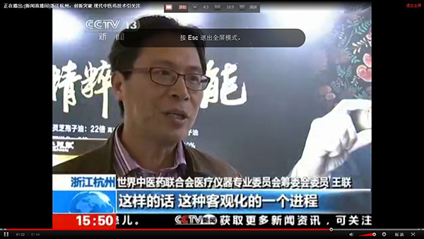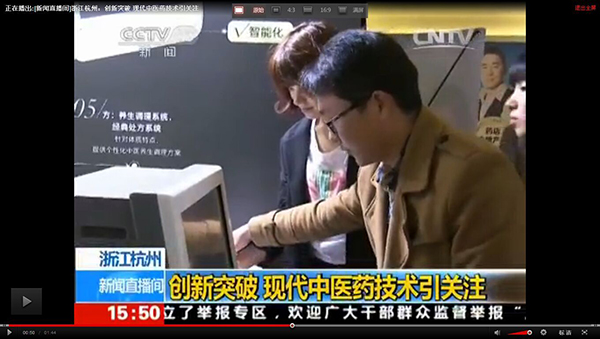 2015全國藥店年度峰會上我公司王總接受中央電視臺采訪,就目前中醫(yī)診療設備及中草藥現代化進程發(fā)表自己的見解。